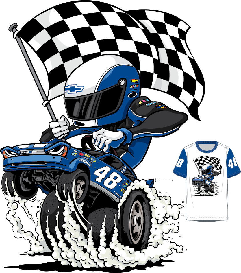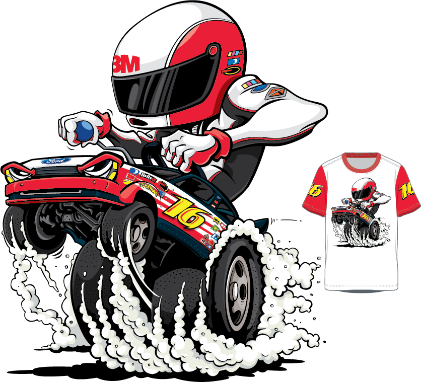 Client : Fanatics / NASCAR Illustration work themed in the Ed “Big Daddy” Roth style. Concepts focused on NASCAR car drivers Greg Biffle and Jimmie Johnson.